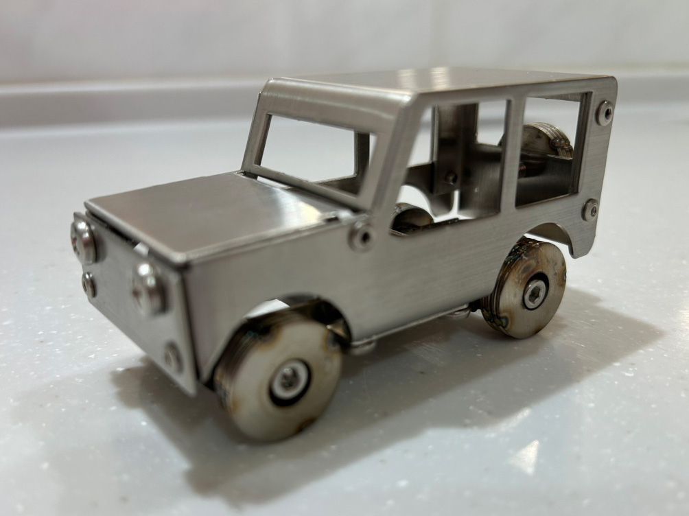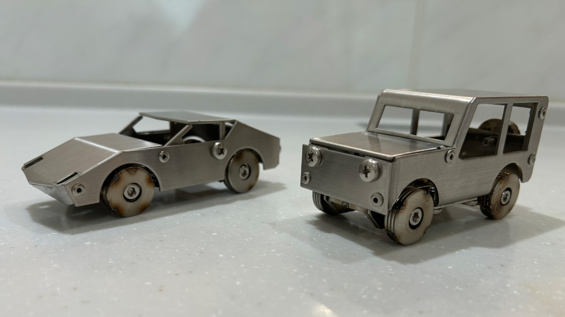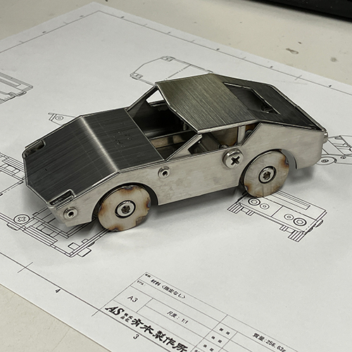 ステンレス製の車を自分の手で組み立て、作り上げます。パーツひとつひとつにあるバリバリした箇所を、ペーパーやすりで滑らかにした後、車を組み上げていきます。少し難しく感じるかもしれませんが、是非挑戦してみてください!専任のスタッフが組み上げのお手伝いをします。
