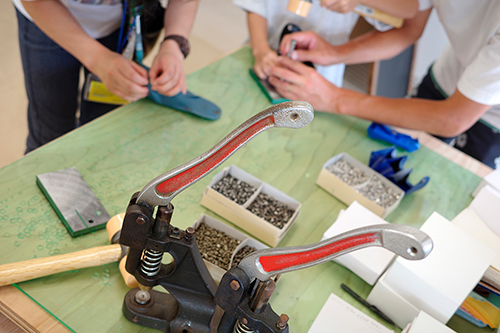 カシメだけで簡単に作れます!専用の道具を使ってパーツを付けるだけ。
