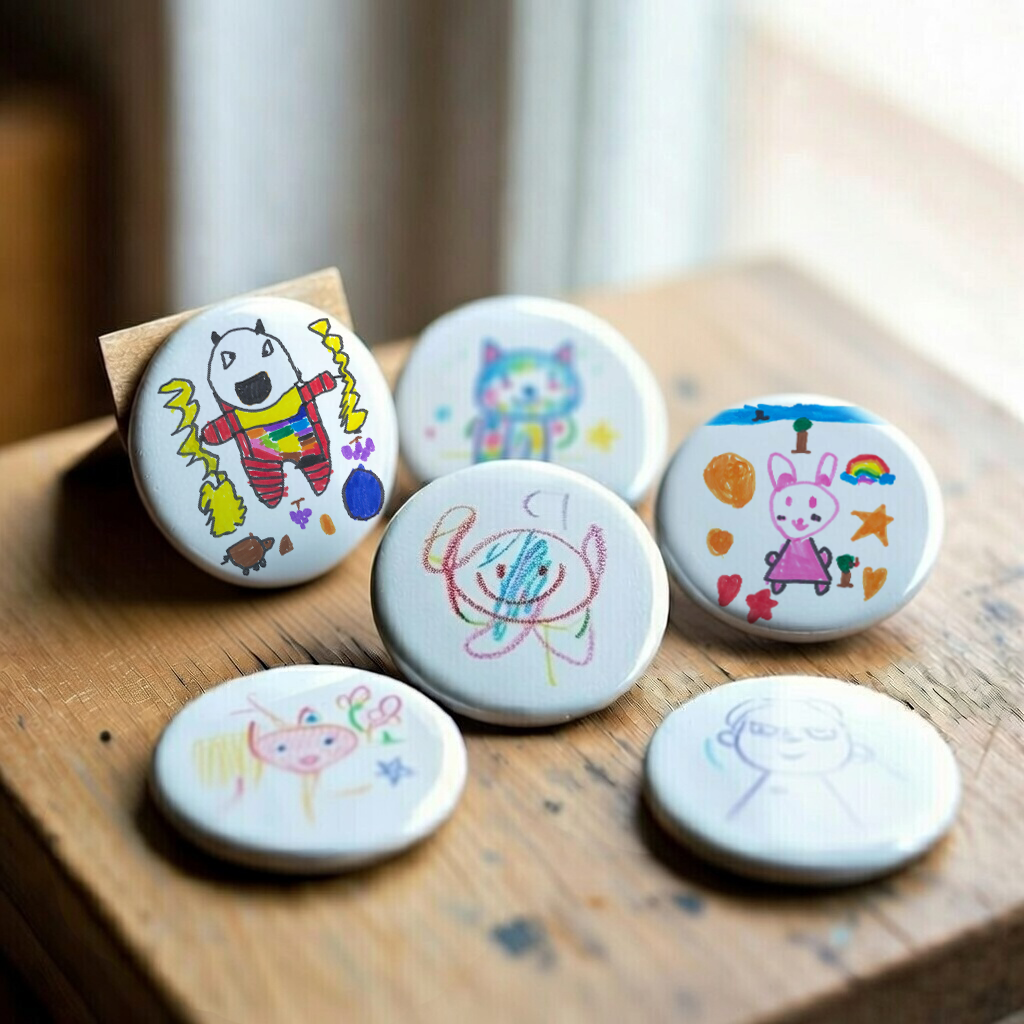 好きなイラストを描いたり、用意したぬりえに色を塗ったりして、オリジナルの缶バッジを制作します。描いた作品はその場で缶バッジに加工し、お持ち帰りいただけます。難しい作業はなく、初めての方でも安心です。
