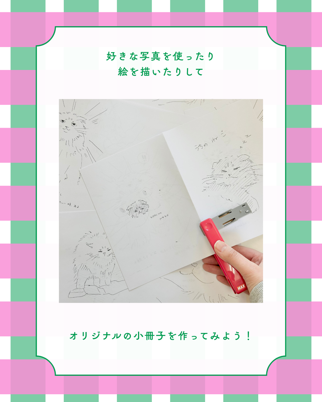 ふとした時に撮った写真をまとめたり、言葉を書いたり、らくがき、イラストや漫画を描いてみるのもOK!お子さんも、大人の方もぜひお気軽に。